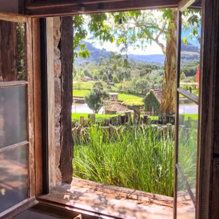 Charme rústico, conforto e uma vista encantadora para o vale. Chalés com lareira e varanda para viver momentos inesquecíveis.